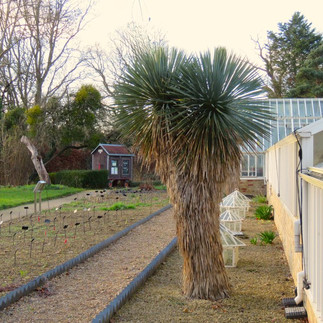 In the Kitchen garden I noticed that the Irises have been thinned out and replanted, photo 7. Sometimes this affects their flowering in the following year so I will watch their progress and share it with you. Also, in the photo is a Yucca thompsoniana. It makes me smile as I imagine someone hiding inside who is going to jump out and say 'boo' at any moment. Further along the path was this display of sprouts, photo 8. Always lovely to see them growing on their chunky stems.