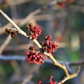 On the path back to the House is the charming Parrotia persica, the Persian ironwood tree, photo 15. This is another tree that opens its flowers on bare stems through Winter, photo 16. On the opposite side of the path is a Corylus avellana 'Contorta', photo 17. Every stem is twisted into corkscrew-like whorls, photo 18.