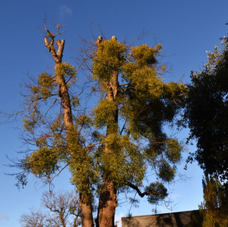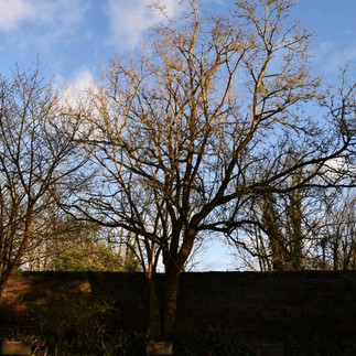 Then outside the courtyard we have the tree-mendous trio, photo 19. The trees are, left to right, Alnus cordata, an Italian alder, then two Tilia x europaea, Lime trees. The Lime tree in the centre has been lopped. I expect he asked for a trim and received a short back and sides instead. Hopefully, he'll bounce back. Finally, the Lime tree with its bountiful covering of mistletoe.