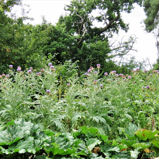 Moving on to the Kitchen Garden there is an abundant crop of Conference pears on the fruit arch this year, photos 6 and 7. I shall look forward to the harvest later in the year. Also here are the Cynara cardunculus or Cardoon also known as Artichoke Thistles. The flowers are striking and are a very beautiful shade of lilac, photo 9.